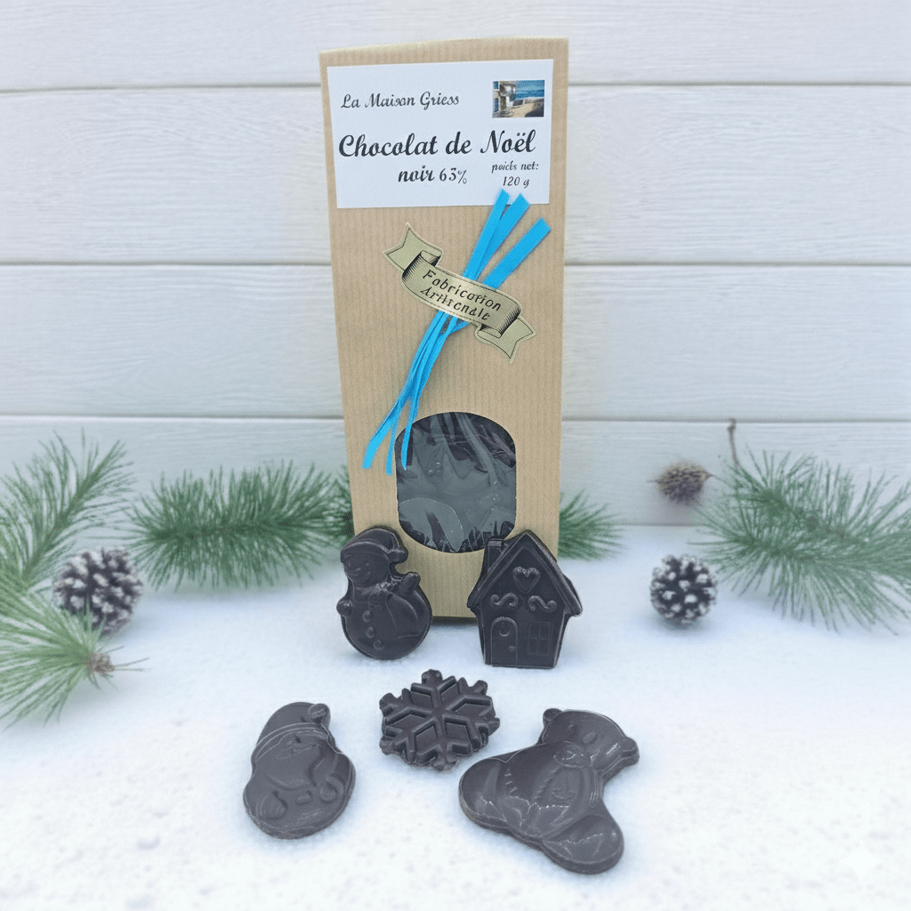 Chez La Maison Griess, nous perpétuons cette tradition avec notre sachet de chocolat noir 65 % minimum de cacao.
